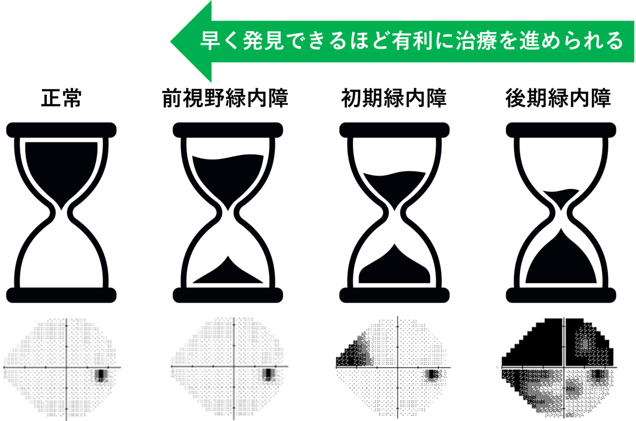 実際には、視野障害がかなり進行してから初めて異変に気づくケースが多く見られます。